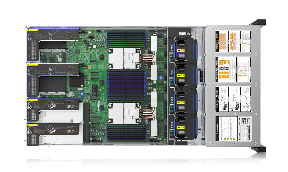 支持1或2颗第四/五代英特尔®至强®可扩展处理器,单颗最多60核心,通用性能提升15%;支持4条UPI2.0总线,每条UPI速率最高可达16GT/s,CPU通讯速率提升25%;支持32个DDR5内存插槽,内存频率支持4400/4800/5600MHz,内存带宽提升50%;支持PCIe标准插槽以及OCP3.0插槽,全面支持PCIe5.0协议,带宽提升100%。